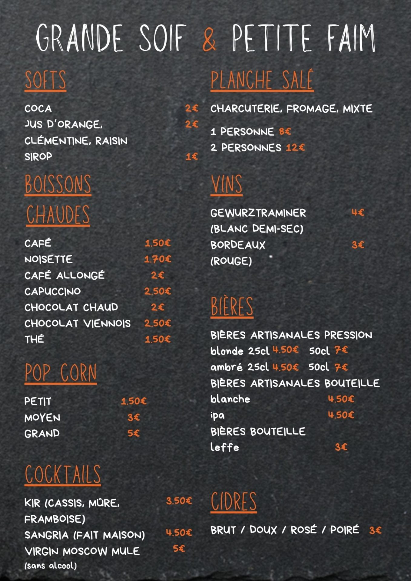 Le bar offre un espace de 70 m2 avec une mini-scène pour les petites formations (one (wo)man show, scène ouverte, karaoké…). Il peut s’étendre sur 25 m2 supplémentaires d’espace pour accueillir une exposition ou pour agrandir l’espace.