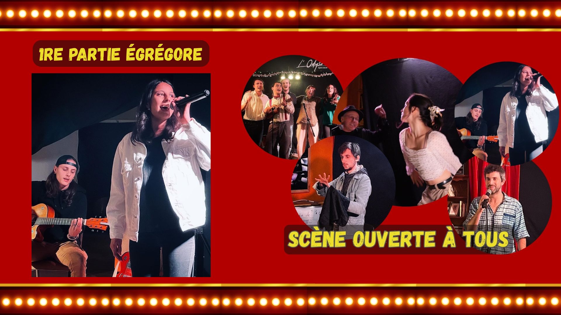 L'Odyssée Spectacle 29 Av. Antoine de Saint-Exupéry, Toulouse, FranceScène ouverte 1re partie Egregore / 2eme partie ouverte à tous vendredi 3 octobre Soirée sangria & plancha Ouverture de la scène avec le groupe Égrégore Un duo guitare/chant qui […]